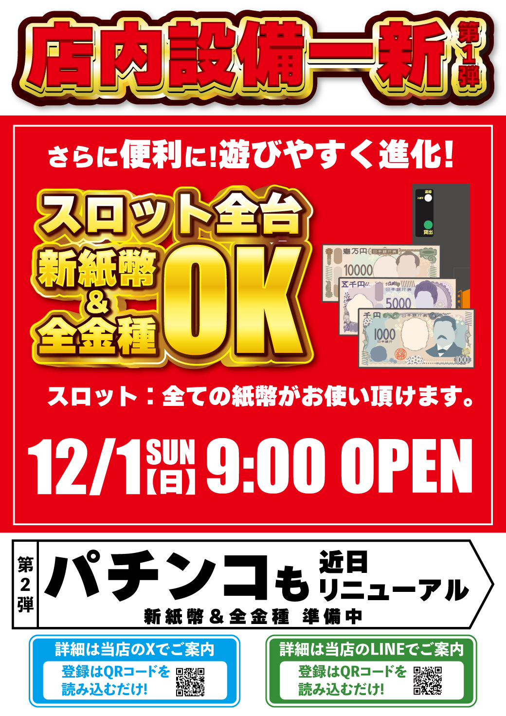 【新紙幣&全金種】対応へと設備が一新いたします!